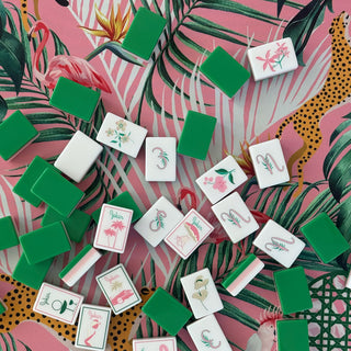 With bold pinks, lush greens, and tropical motifs that feel straight out of a vintage Palm Beach soirée, the Palm Royale Collection is a playful nod to resort elegance and couture flair. From chic icons and whimsical leopards to a palette that celebrates retro charm, every detail transforms mahjong into a statement of glamour, color, and delight.