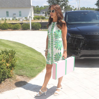 Chic in pink with a refined green accent, this case is as fashionable as it is functional. Measuring 24” × 11.5”, fits the 1" x 1.44' x .59" tiles. It’s perfectly sized to house your full set while protecting it from wear with durable materials and thoughtful craftsmanship. Complete with a smooth finish and structured design, the case transforms storage into a statement, making every journey feel as elevated as the game itself.