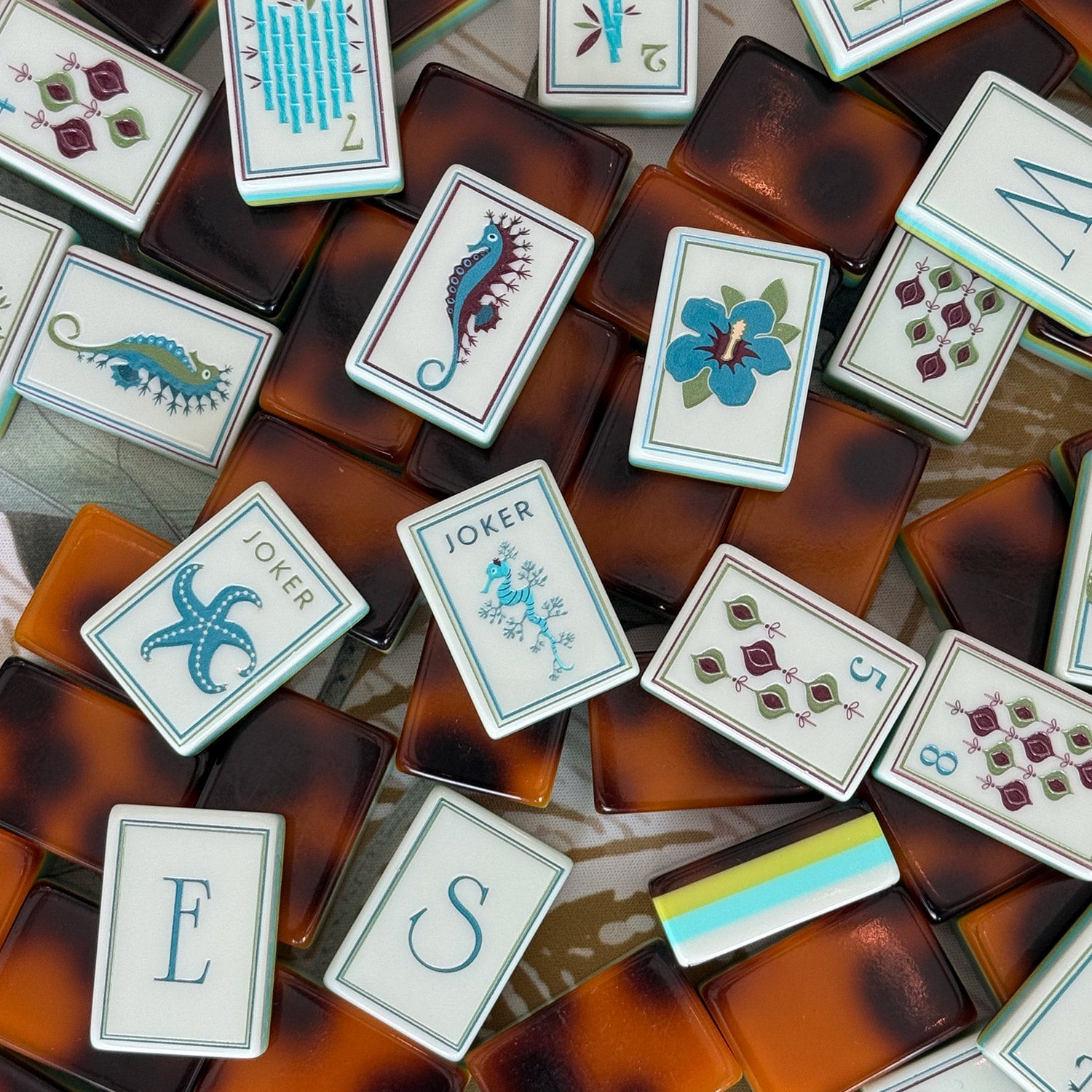 Think holiday on the coast... where starry nights meet sparkling seas with holiday elements intertwined. The Coral & Coast Holiday Supplement Tiles embody refined festivity with a coastal twist: celebratory yet chic, joyful yet timeless. Perfect for transforming your table into a seasonal statement without losing the effortless elegance that defines Mahj Tile Haus. Legacy Holiday family memories to be made with this addition to the collection.