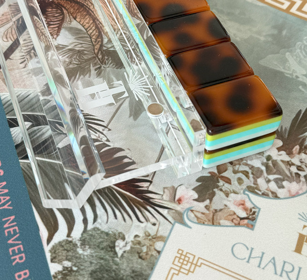The White Lotus Mat is a defining piece within the Mahj Tile Haus collection and a must-have for serious collectors. The elegance and artistry secure its place as a timeless treasure. Owning this mat ensures your game table reflects the highest expression of coastal luxury and couture design.